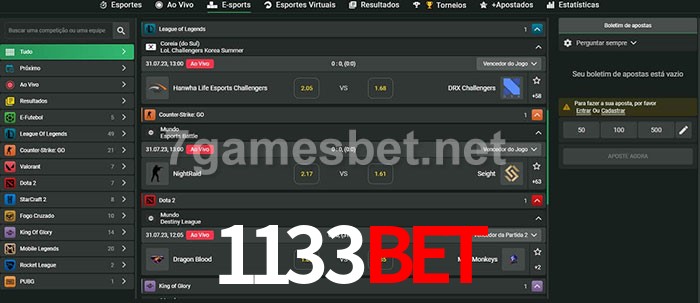 O 1133bet oferece uma grande seleção de opções de apostas em e-sports com probabilidades competitivas